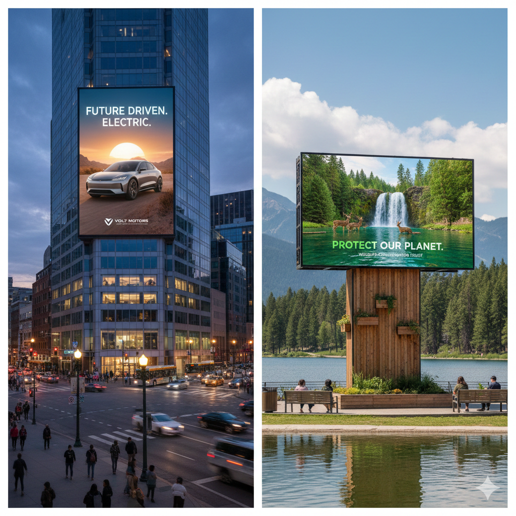 特に道路沿いや屋外壁面ではLEDビジョン一択と言ってもよい。